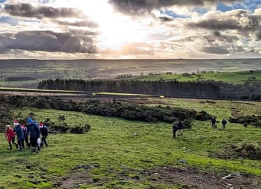 14 walkers enjoyed the Wayfarers' October free guided walk. The route onto the moors above Wolsingham provided great views of Tunstall Reservoir and along Weardale. The rain held off until we arrived back in the town!