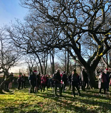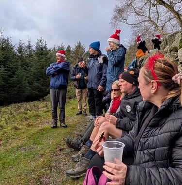 Our popular Christmas Walk took place on December 13th and we were joined by 30 walkers on a 5.5 mile route to the Christmas Trees at Ladley Burn. At the Christmas Trees, we enjoyed Mulled Wine and Mince Pies.